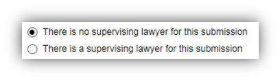You will be redirected to the submission details screen. - Identify if there is a supervising lawyer for the submission