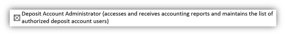 - Be registered as a deposit account administrator which will give you the security permissions needed to manage your account (you may identify two account administrators on the client application form).