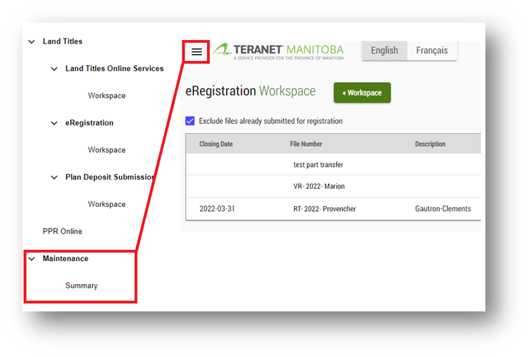 This section of the guide provides steps for managing accounts in the maintenance application. Locate the account maintenance application menu by clicking on the three lines located on the top left hand side of the application: