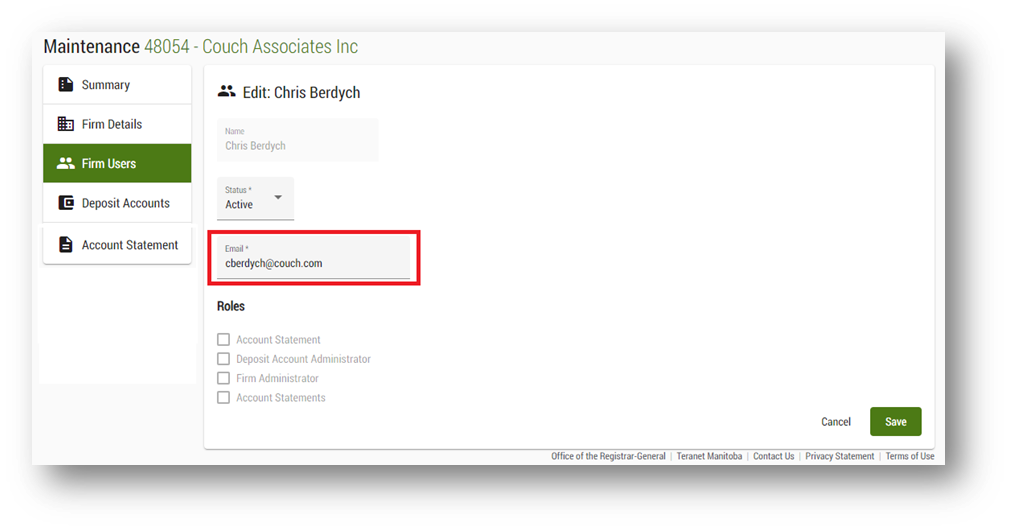 Update a firm user’s email address