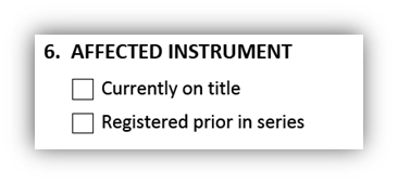 - If the intent is to provide an affected instrument in this box and the interest claimed supports this there are two options for doing so:
