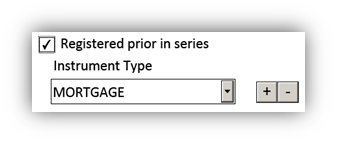 - If the affected instrument will be registered prior in series to this caveat, select registered prior in series and then select the instrument type from the drop down list for the affected instrument (you cannot enter the instrument number as you will not know it at the time of preparation).