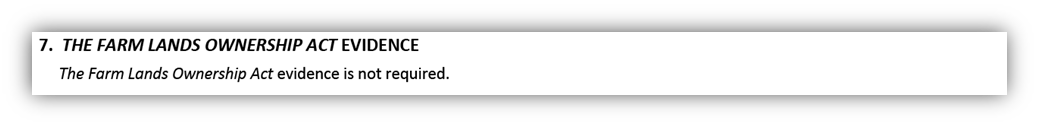 - If no evidence is required the box will contain the statement The Farm Lands Ownership Act evidence is not required.