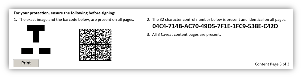 Once the form has been locked four security features will be embedded onto each page. The security features are unique to each individually created document and offer a level of protection and encryption of the information.