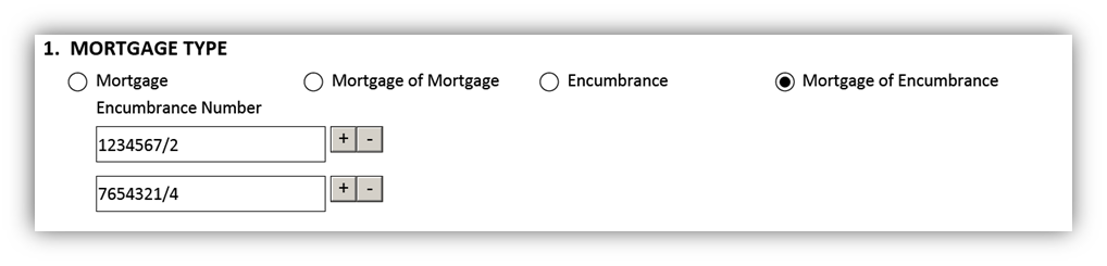 If you select mortgage of mortgage or mortgage of encumbrance then you must specify the mortgage(s) or encumbrance(s) that will be mortgaged.