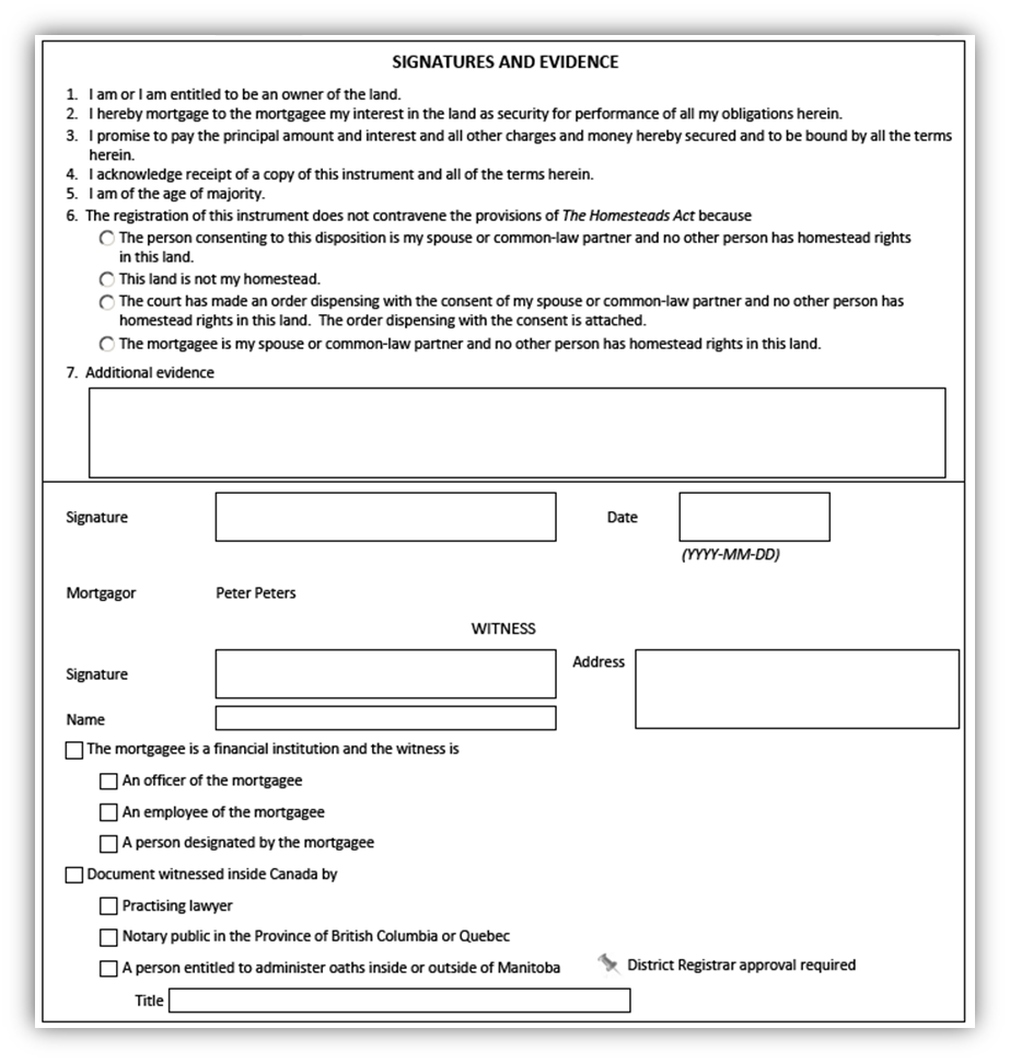 - A signature page will be created for each mortgagor/grantor of encumbrance that you indicated in Box 2.
