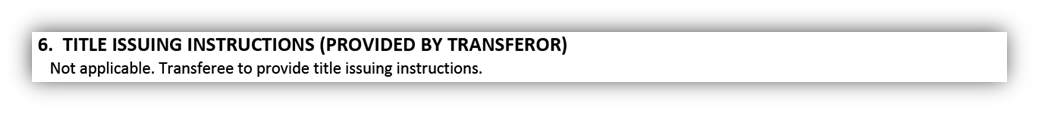 - If there will be title issuing instructions, they can be provided by either the transferor or the transferee.