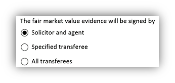 If a solicitor and agent for the transferee(s) is providing either the fair market value evidence or the Farm Lands Ownership Act evidence (or all the evidence) then box 17 will display as follows: