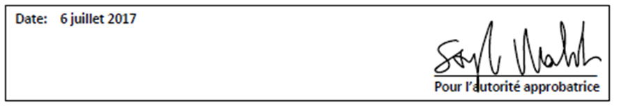 La signature apposée sur le certificat d’approbation doit être l’original et indiquer « pour l’autorité approbatrice » ou d’autres termes à cet effet. Il y a un certain nombre de signataires autorisés pour l’autorité chargée de l’aménagement du territoire.