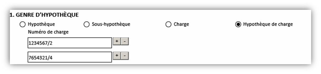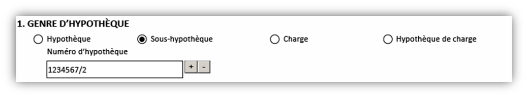 Si vous sélectionnez une sous-hypothèque ou une hypothèque de charge, vous devez préciser l’hypothèque (les hypothèques) ou la charge (les charges) qui doit (doivent) être hypothéquée(s).