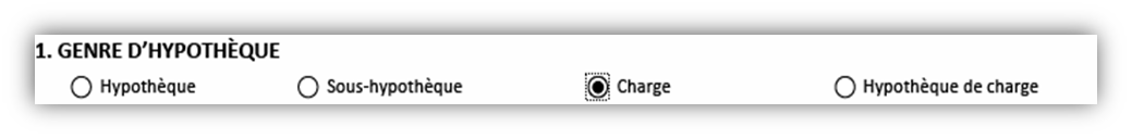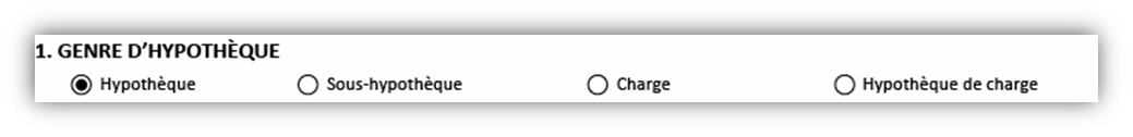 Utilisez cette case pour indiquer le genre d’hypothèque à enregistrer. Vous avez quatre options :