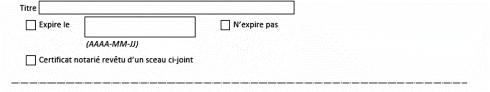 • Les renseignements exigés sur les pages de signature varient selon les renseignements indiqués sur les pages de contenu.