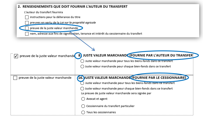 - Pour chaque option non sélectionnée, une case apparaîtra après le premier verrouillage du formulaire afin que le cessionnaire du transfert la remplisse.