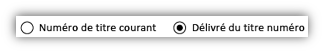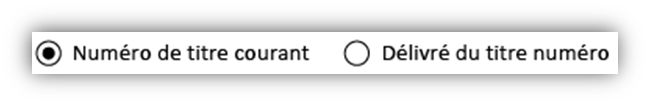 - Numéro de titre courant si le numéro de titre est déjà actif et le sera lorsque le transfert sera enregistré.