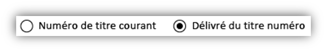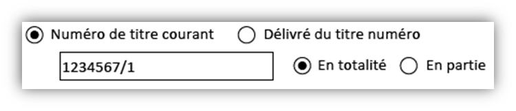 - Numéro de titre courant si le numéro de titre est et sera actif lorsque le transfert sera enregistré à son égard.