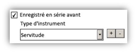 - La liste déroulante ne contient que les instruments qui peuvent être reportés au moment d'un transfert. C'est pourquoi il est possible de sélectionner une hypothèque dans la liste, mais pas un changement d'adresse aux fins de signification.