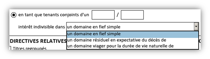 Enfin, si vous avez choisi un intérêt particulier indivis, vous devez insérer les nombres nécessaires pour créer la fraction appropriée.