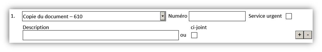 • La sélection de la dernière icône au bas de la liste ajoutera une ligne supplémentaire à la fin de la liste courante de documents. La sélection de l’icône plus/moins aura l’effet opposé.